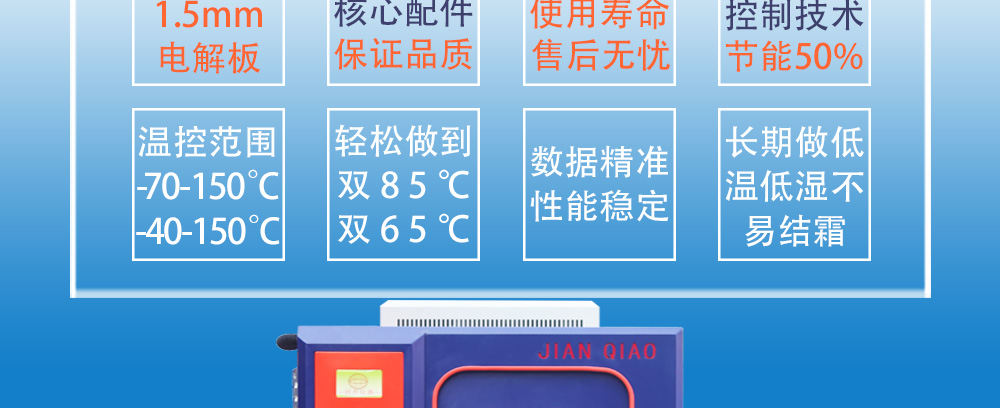 用途:新款恒溫恒濕試驗箱(JQTH-408L),主要用來測試各種材料耐熱、耐寒、耐干、耐濕的性能。本機采用中英俄文顯示彩色觸控式屏幕畫面,操作簡單,程序編輯容易可顯示完整的系統(tǒng)操作狀況