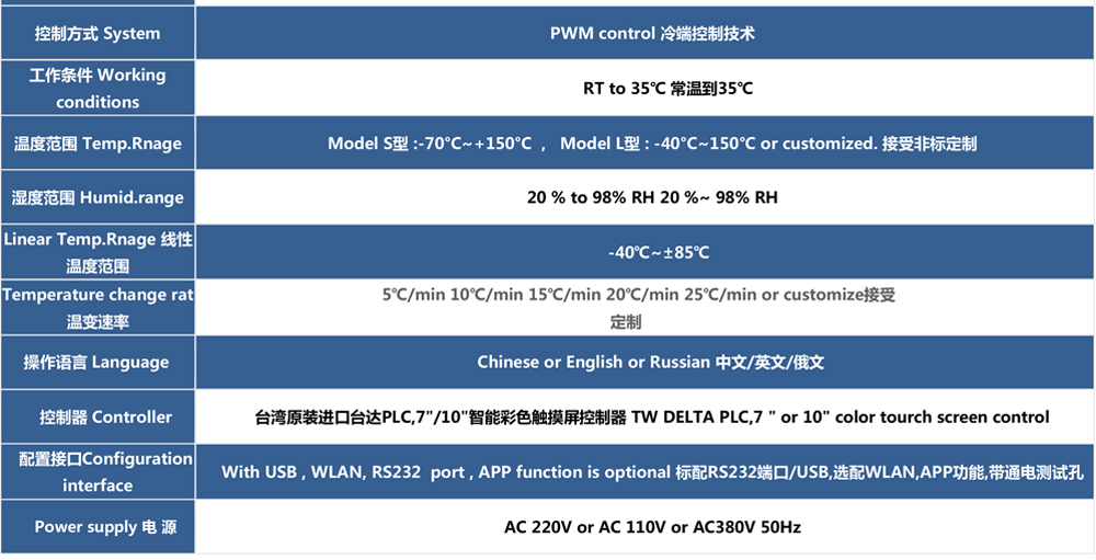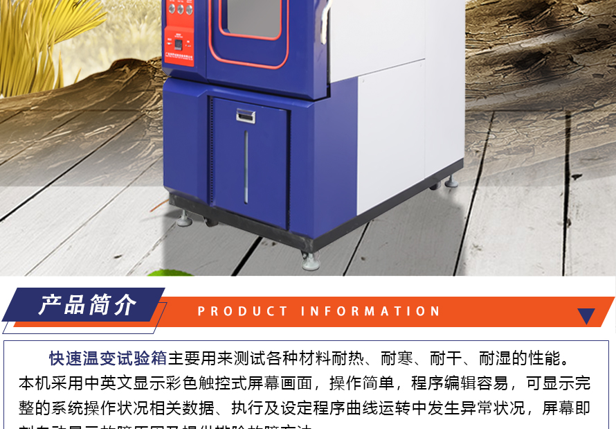 用途:快速溫變試驗(yàn)箱主要用來測試各種材料耐熱、耐寒、耐干、耐濕的性能。本機(jī)采用中英文顯示彩色觸控式屏幕畫面,操作簡單,程序編輯容易,可顯示完整的系統(tǒng)操作狀況相關(guān)數(shù)據(jù)、執(zhí)