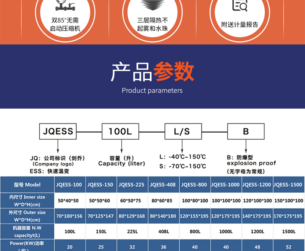 • 快速溫變試驗(yàn)箱型號(hào)命名說明 及 參數(shù)表