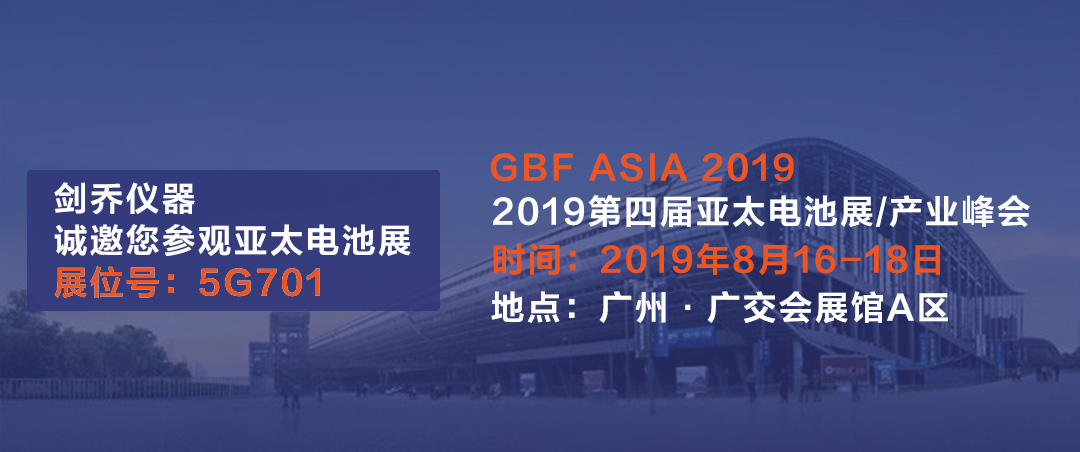 GBF.ASIA 2019第四屆亞太電池展將于2019年8月16日至18日在廣州·廣交會(huì)展館舉行。廣東劍喬試驗(yàn)設(shè)備有限公司(劍喬儀器)將攜旗下最新儀器設(shè)備盛裝亮相。