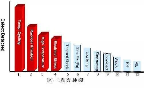 研究表明,高低溫循環的篩選效果取決于四個方面:高、低溫的設定值,高、低溫保持的時間,溫度變化速率和循環的次數。增大溫度變化速率,效果較好。設備中元器件數量多,則循環次數應增加。隨機振動篩選效果好于掃頻正弦振動,在不造成對產品損壞的情況下,振動應力強一些,則效果好。