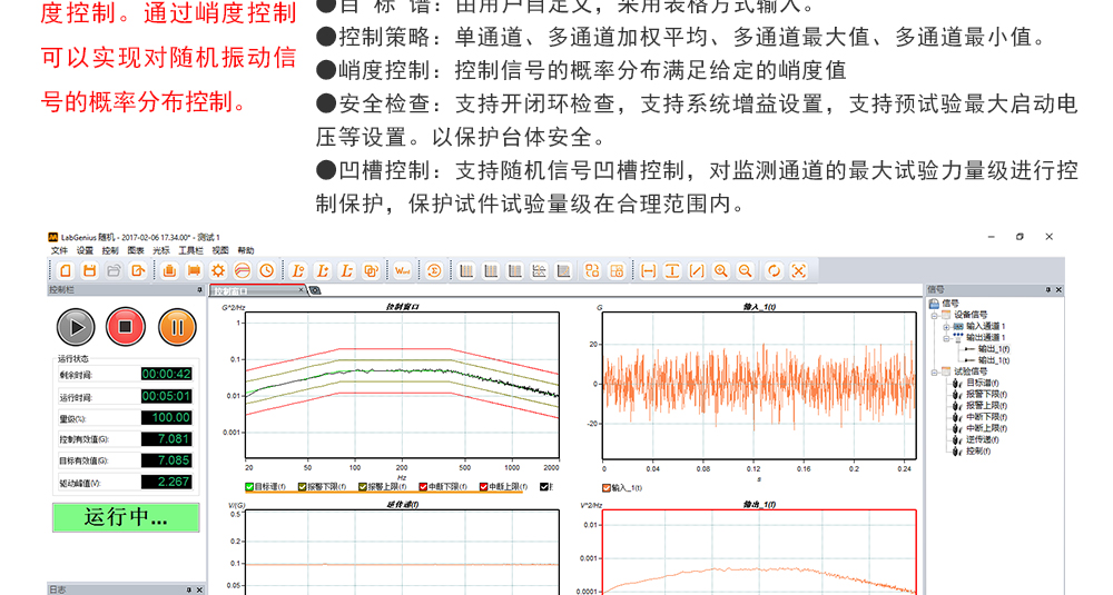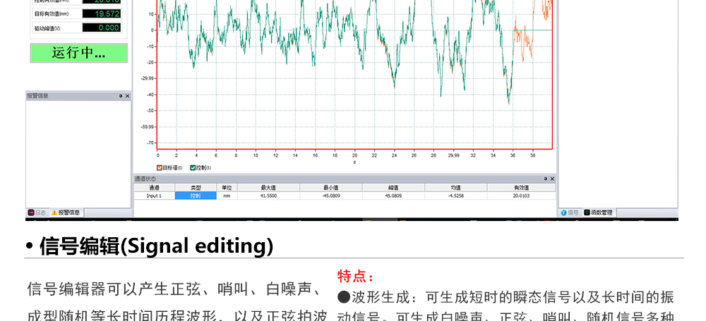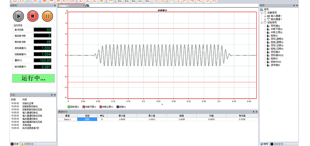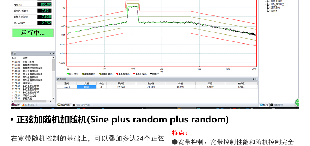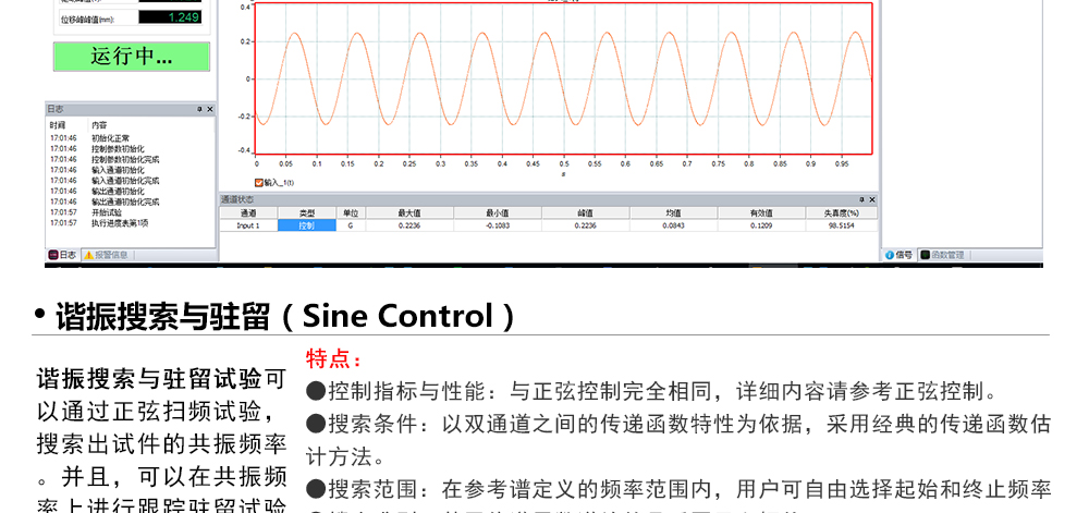 用途:正弦試驗可以控制振動臺實現定頻(駐留)、掃頻等振動試驗??刂扑惴ㄖ胁捎昧烁櫈V波的幅值以及相位檢測算法,可以實現對控制信號的準確反饋以及實時的閉環控制。