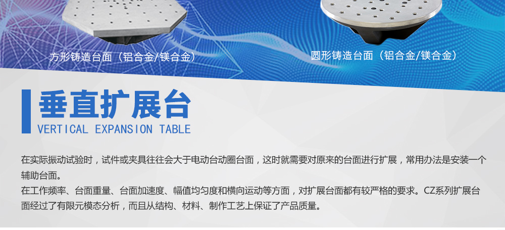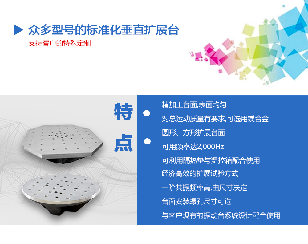 用途:供應(yīng)眾多型號的標(biāo)準(zhǔn)化垂直水平擴展臺,而且支持客戶的特殊定制,從而滿足客戶對振動臺性能擴展的需求。在實際振動試驗時,試件或夾具往往會大于電動臺動圈臺面,這時就需要對